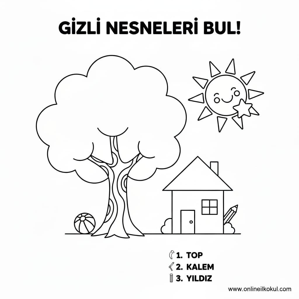Gizli nesneleri bul top kalem yıldız ağaç boyama çalışması İNDİR