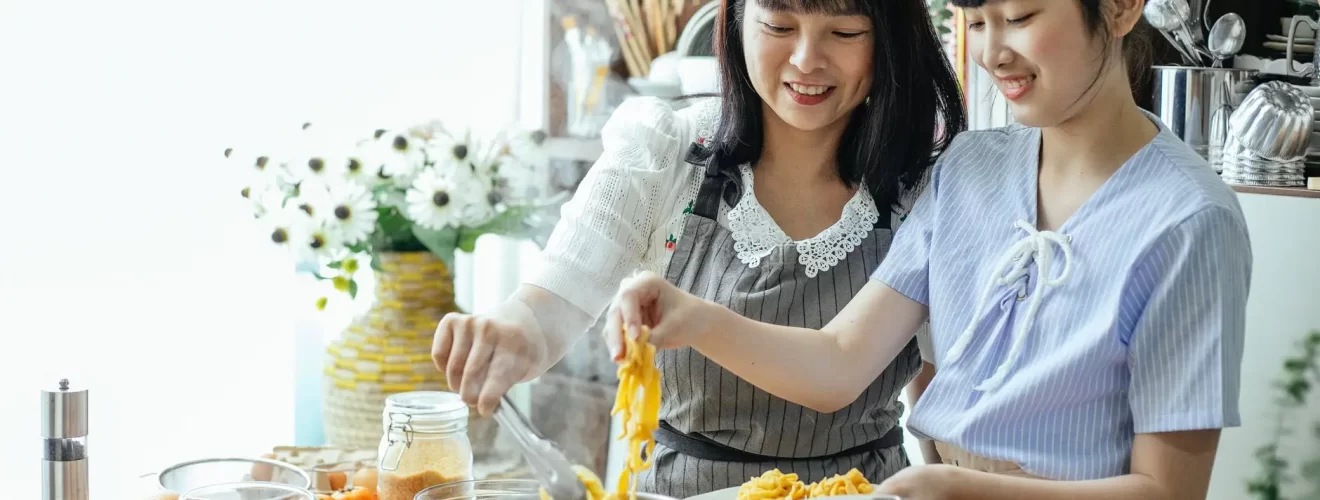 yemek pişirmek makarna kızlar gülümsemek