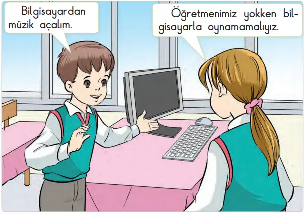 – Öğretmenimiz yokken bilgisayarla oynamamalıyız.